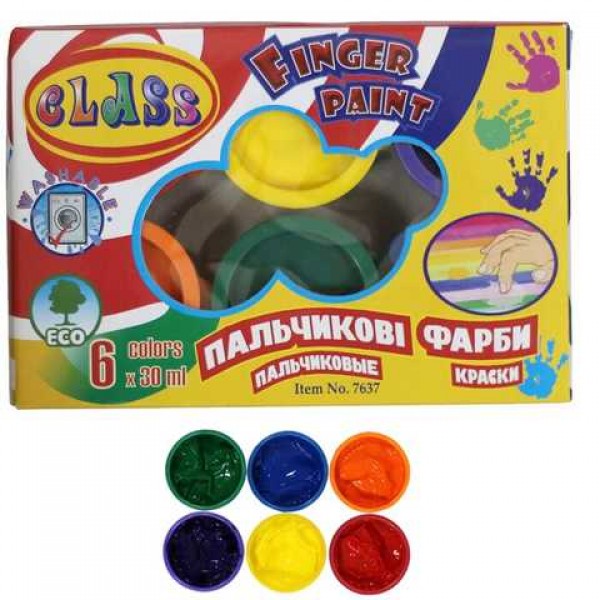 Фарби пальчикові 6 кол., 180 мл, 7637, CLASS
