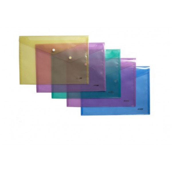 Папка-конверт А4, на кнопці, прозора, мікс 4-208 4Office